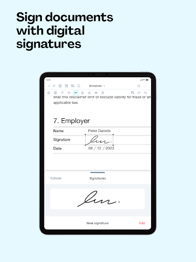 Unggah dokumen langsung dari penyimpanan ponsel Anda atau impor langsung dari platform penyimpanan yang Anda sukai seperti Google Drive dan Dropbox.Gunakan fitur pengeditan PDF kami untuk menambahkan teks, komentar, atau menandatangani dokumen langsung dari aplikasi.