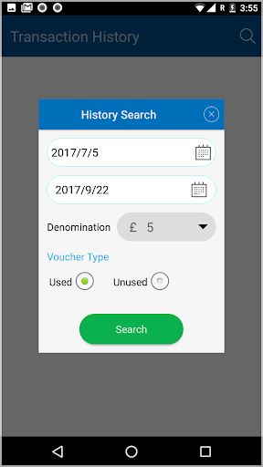 Transaction Search: Details such as date, denomination, vouchers etc. are all clearly displayed for each voucher generated