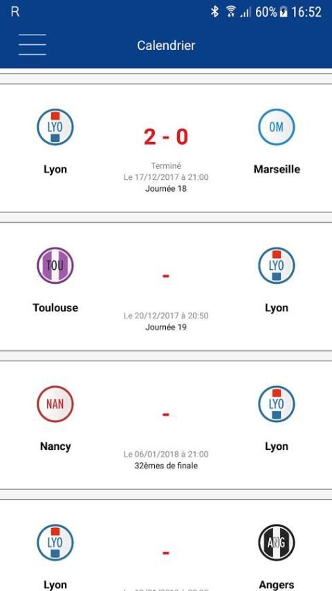 - Hasil: Ikuti hasil, kalender dan peringkat semua kompetisi Olympique Lyonnais Ligue 1, Liga Champions, Perancis Cup, Piala Liga!
