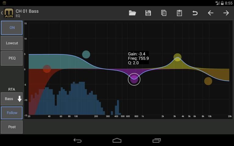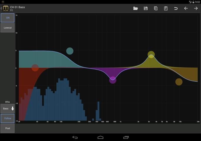 - Saluran EQ Parametrik Control - menyempurnakan EQ dari mana saja di ruangan