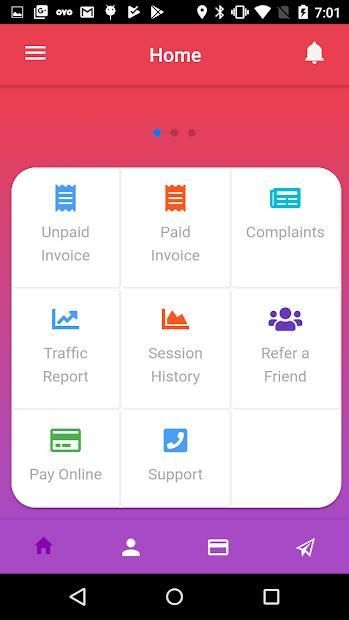 Jangkauan pengguna Broadband dapat menggunakan aplikasi ini untuk menambahkan keluhan, pembayaran online, melihat laporan lalu lintas. Pengguna dapat masuk dan mereka dapat mengelola paket mereka sendiri, menambahkan keluhan, pertanyaan, faktur