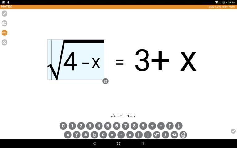 Matek mengajarkan Anda bagaimana untuk memecahkan persamaan linear dan kuadrat dengan akar dan derajat yang lebih tinggi.