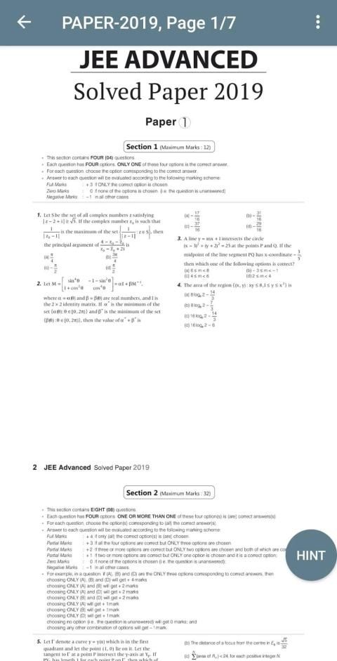 TABLE OF CONTENT: Complex Numbers, Theory of Equations, Sequences and Series, Permutations and Combinations, Binomial Theorem, Probability, Matrices and Determinants, Functions, Limit, Continuity and Differentiability, Application of Derivatives, Indefinite Integration, Definite Integration, Area, Differential Equations, Straight Line and Pair of Straight Lines, Circle, Parabola, Ellipse, Hyperbola, Trigonometrical Ratios and Identities, Trigonometrical Equations, Inverse Circular Functions, Properties of Triangles, Vectors, 3D Geometry, Miscellaneous, JEE Advanced Solved Paper 2019.