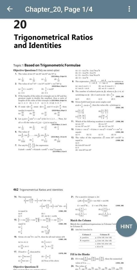 DAFTAR ISI: Bilangan Kompleks, Teori Persamaan, Urutan dan Seri, Permutasi dan Kombinasi, Teorema Binomial, Probabilitas, Matriks dan Faktor Penentu, Fungsi, Batas, Kontinuitas dan Dapat Dibedakan, Penerapan Derivatif, Integrasi Tidak Terbatas, Integrasi Terbatas, Area, Perbedaan Persamaan, Garis Lurus dan Pasangan Garis Lurus, Lingkaran, Parabola, Ellipse, Hyperbola, Rasio dan Identitas Trigonometrik, Persamaan Trigonometrik, Fungsi Melingkar Terbalik, Properti Segitiga, Vektor, Geometri 3D, Lain-lain, JEE Advanced Soal Paper 2019.