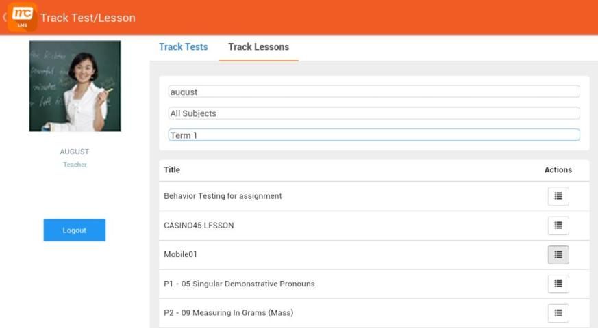 Melacak Uji / Pelajaran: Melacak tes siswa dan pelajaran Status tugas.