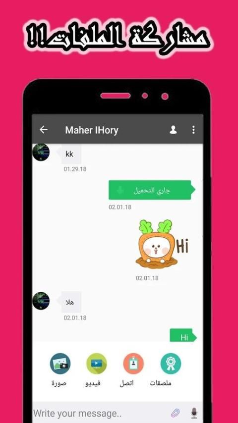 - تستطيع مشاركة الملفات /صور /فيديوهات / جهات الاتصال .