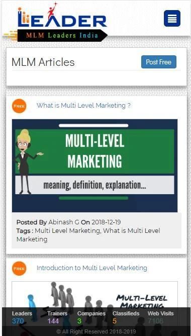 We are very glad to launch mlmleadersindia.com, a website providing a bridge between the Leading MLM Companies and all those peoples who are connected with Network Marketing Industry. We aim to cater a wide range of MLM business group by collaborating MLM Leaders, MLM trainers, MLM Companies and MLM service providers.