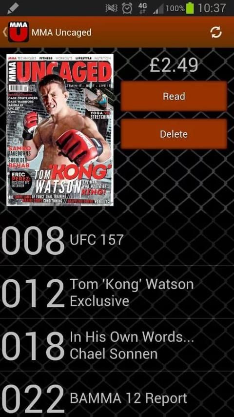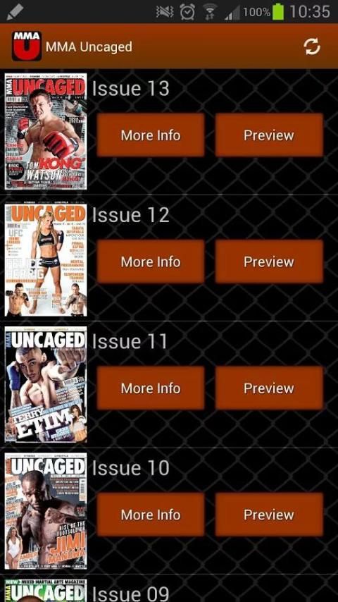 Aplikasi resmi dari MMA majalah Uncaged. Aplikasi ini menyediakan isu-isu penuh MMA uncaged dalam format digital lebih murah daripada versi cetak.