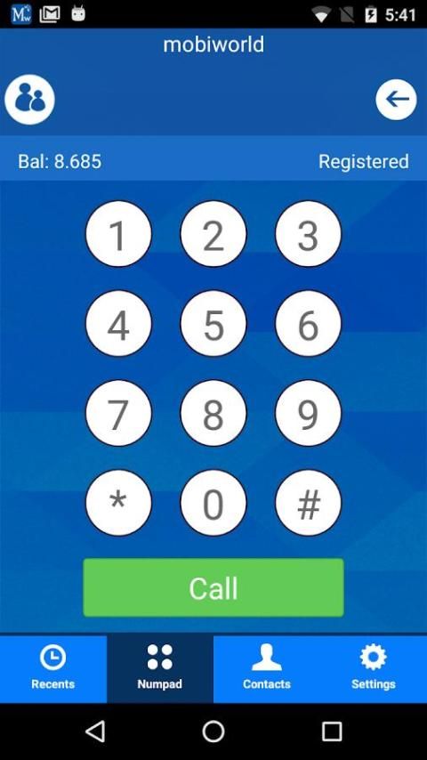 MOBIWORLD adalah aplikasi Ponsel VoIP dialer yang memungkinkan untuk membuat panggilan VoIP dari salah satu perangkat Android dan menggunakan 3G / Ujung / Wi-Fi Internet connectivity.It dikembangkan berdasarkan persyaratan kebutuhan Penyedia VoIP bisnis