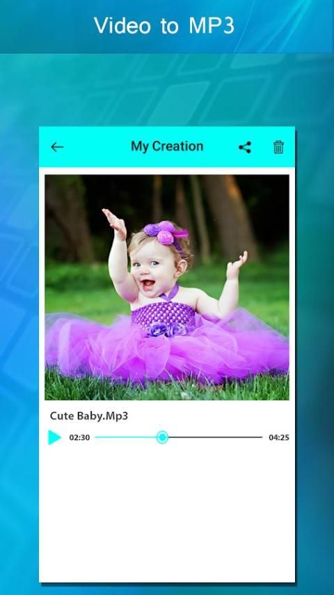 Video Untuk MP3 Pilih video dan memilih mulai dan waktu akhir video Anda ingin mengkonversi audio, video ke pembuat MP3 ekstrak audio dan simpan ke telepon Anda. mp3 converter akan pembuat musik dan pembuat audio yang tool.With