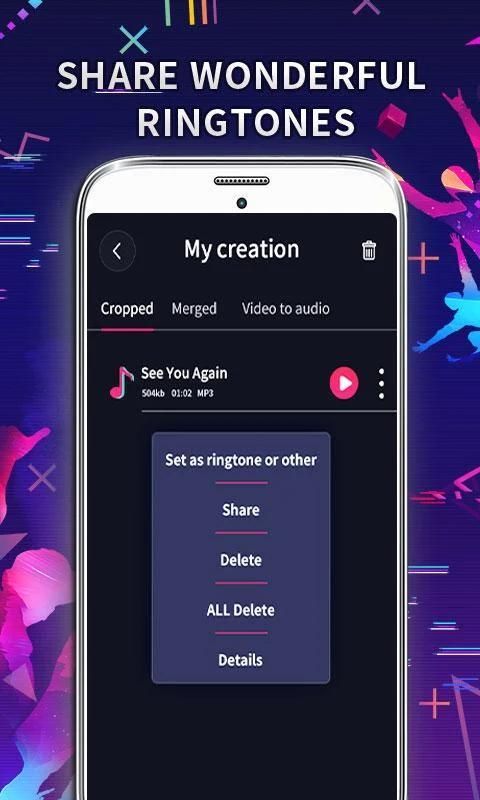 Trim Audio: Crop a part of the audio as a ringtone, alarm, and notification tone. A practical interface helps you remove redundant parts of your song.