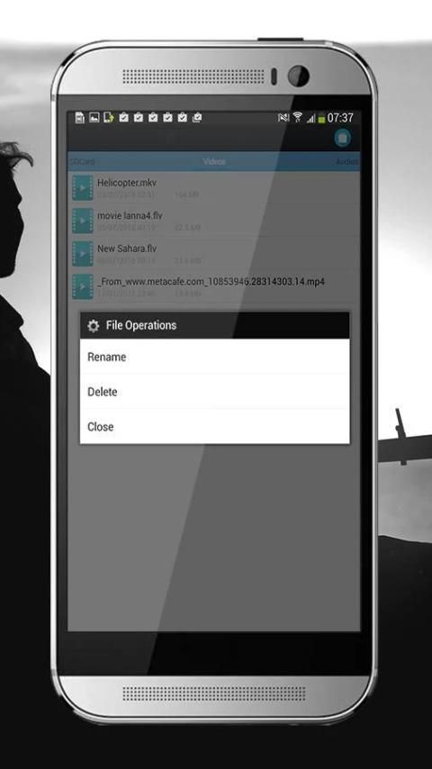 Pada perangkat Anda, Anda dapat browsing dan duduk file media flash, video, audio, gambar.