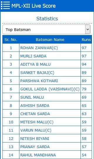 App ini Dikembangkan Untuk Maheshwari Premier League, Sangli Untuk Memberikan Hidup Cricket Score Untuk Turnamen Kriket lokal Ada. App ini Menyediakan Hidup Cricket Scores, Cocok Jadwal, Old Hasil Pertandingan, Berbagai Statastics, dll