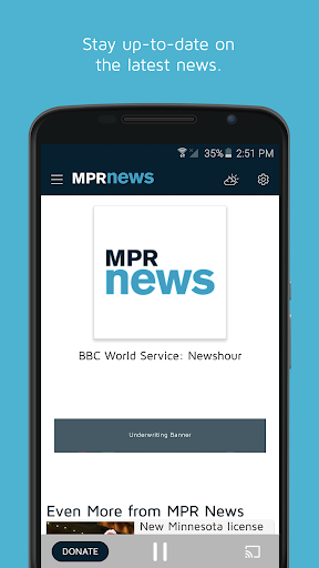 MPR Radio App terhubung dengan AndroidKendaraan Kompatibel Auto dan Android memungkinkan Anda untuk memilih, memutar, dan menjeda streaming.Fitur lain termasuk audio streaming berkualitas tinggi, alarm, timer tidur, cuaca yang terletak geo bersama dengan pemula dan integrasi Chromecast.