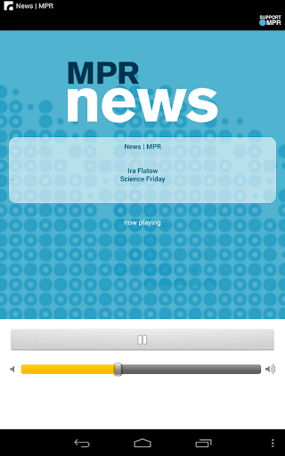 Dengarkan radio publik Minnesota yang didukung anggota di mana pun Anda pergi dengan aplikasi radio MPR.Dengan aplikasi ini Anda dapat melakukan streaming siaran langsung dari MPR News, Klasik MPR, dan aliran arus dan tambahan seperti Radio Heartland, arus lokal, Rock Cradle dan Choral Stream.