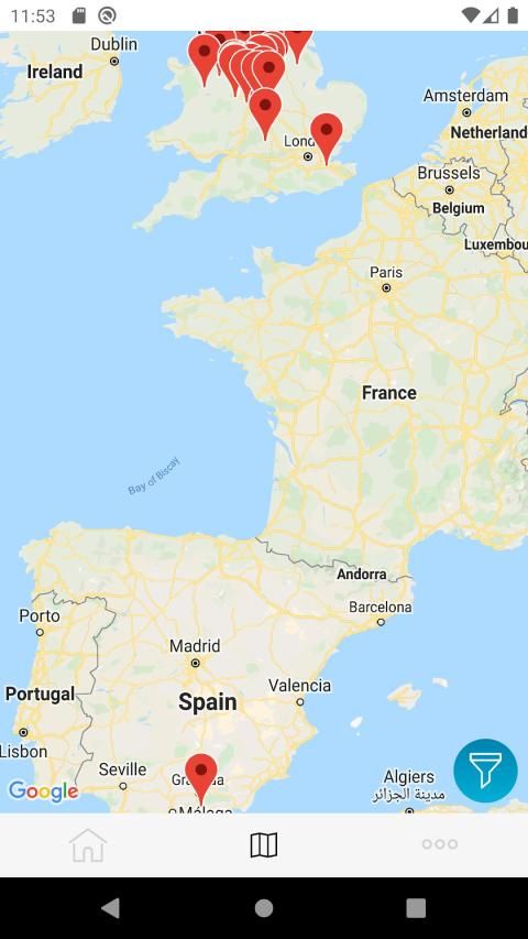 : tombol baru di sebelah rumah disebut MAP: Ini akan menampilkan semua bisnis dan kami akan memberikan filter kategori di layar peta