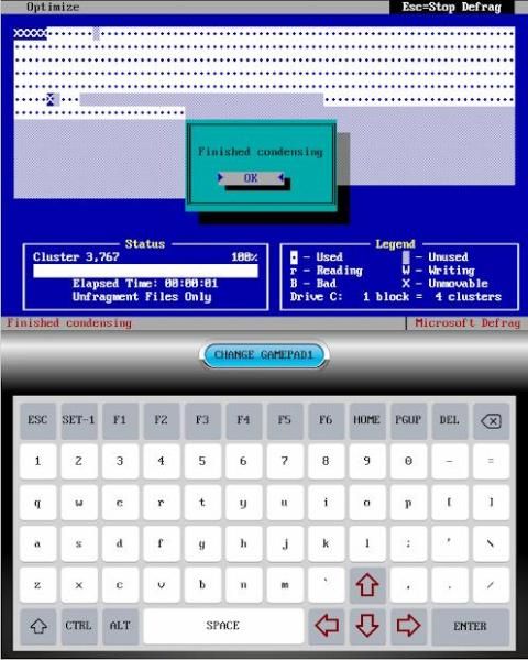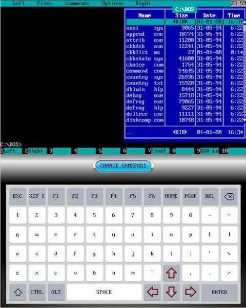 Dalam aplikasi ini, MSDOS sepenuhnya ditiru. Anda dapat menggunakannya untuk menjalankan game yang lebih tua, program, dan juga mengembangkan aplikasi dos dengan menggunakan QBasic.