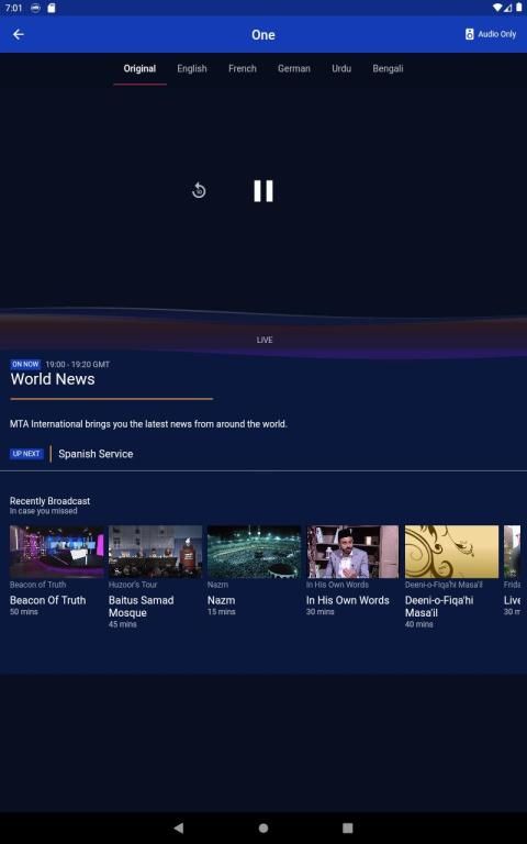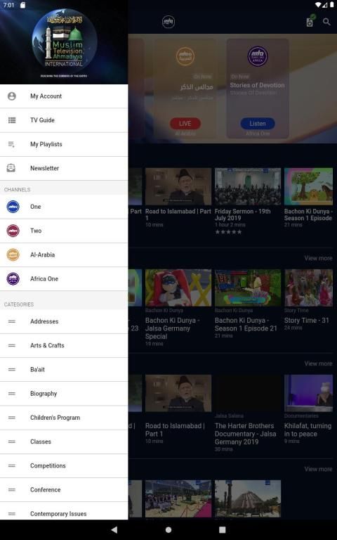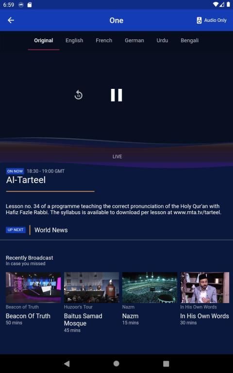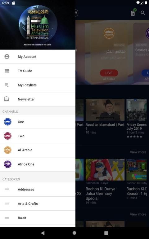 Visi Global. Nilai Global. MTA International muncul pada tahun 1994 dengan tujuan memberikan alternatif positif di dunia penyiaran. MTA adalah gagasan Hazrat Mirza Tahir Ahmad, Khalifat-ul-Masih IV (Semoga Allah mengampuni dia), dan sejak awal MTA telah menjadi saluran unik dalam banyak hal. Fokusnya terletak pada pembuatan program yang dapat dinikmati oleh orang-orang dari segala usia setiap saat. Ia mengakui bahwa televisi memainkan peran penting di dunia dan karenanya mengabdikan dirinya untuk menerapkan pengaruh ini secara positif untuk tujuan mendidik para pemirsanya. Masa depan MTA tidak tergantung pada sponsor komersial atau biaya lisensi, sehingga memungkinkannya untuk berkonsentrasi dalam menghasilkan berbagai program pada berbagai mata pelajaran bagi pemirsanya di semua bagian dunia, tanpa mengorbankan standar.