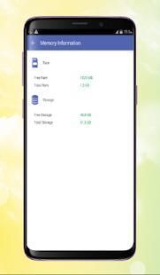 * System information : device brand & model, screen resolution, RAM, storage.;
