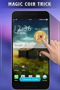 - Take up the phone and store it under real coin. Then, touch the screen with your finger.