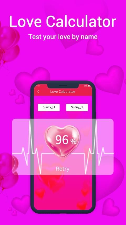 Cukup masukkan nama dan nama kekasih Anda dan hitung persentase cinta.