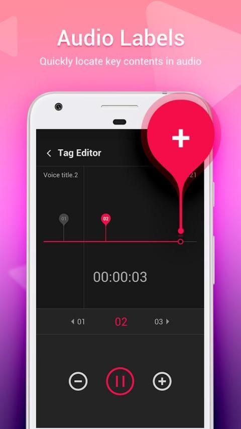 Merasa sulit untuk mengetahui poin-poin penting dalam setiap audio yang direkam? Sihir Recorder menawarkan cara termudah untuk menambahkan tag saat merekam. Anda juga dapat dengan mudah melompat ke titik-titik tanda ketika bermain. perekam sihir adalah editor suara juga.