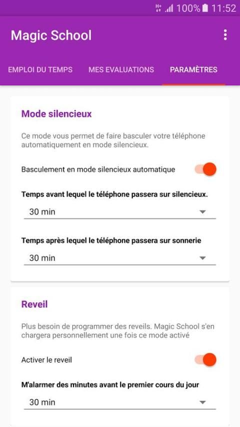 Sihir Sekolah didedikasikan untuk siswa dan mahasiswa melamar catatan semua rincian jadwal mereka, guru mereka, materi mereka; untuk merekam evaluasi mereka; untuk beralih telepon mereka ke modus diam secara otomatis selama jam sekolah dan kembali ke modus dering setelah; dan akhirnya mengubah ponsel kebangkitan mereka.