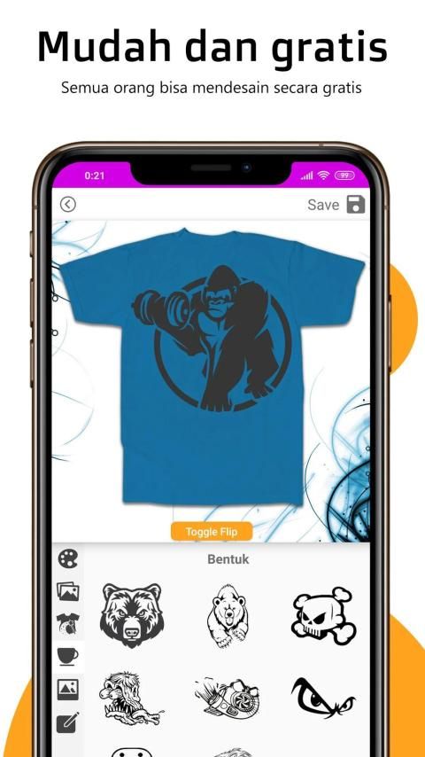 Magic T-Shirt Design adalah aplikasi android gratis yang digunakan untuk Mendesain Kaos, Lengan Panjang, Hoodie, Ritsleting Hoodie dan Tanktop baik Sisi, Depan dan Belakang.