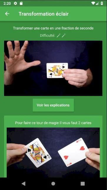 L'application est 100% gratuite (pas besoin de payer pour consulter les explications des tours de magie).