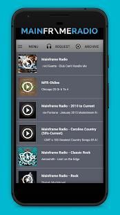 Dengarkan stasiun radio (s), mengirimkan lagu permintaan / shoutout, melihat Kamera Hidup Studio, tetap berhubungan dengan staf MFR. Mainframe Radio juga baterai ramah! App kami telah dikembangkan untuk menyebabkan kinerja dan baterai minimal dampak pada ponsel Anda! Sebuah ponsel mati tidak pernah menyenangkan!
