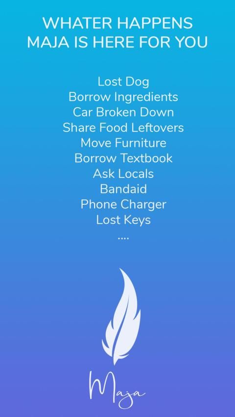 Maja is connecting people who are nearby, but would never ask each other for help, because of all the barriers we have built.