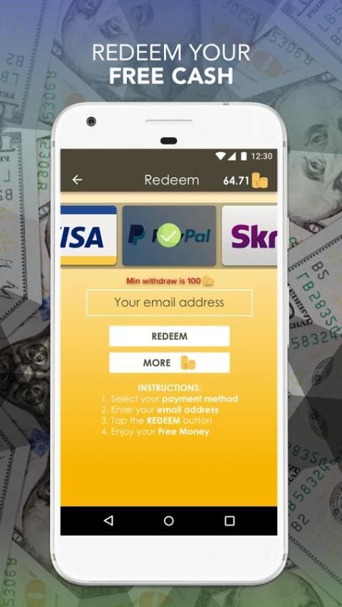 Dengan Uang Membuat kami, Gratis aplikasi Cash, Anda dapat menebus sistem pembayaran kartu hadiah yang paling populer seperti PayPal, Visa, Skrill, Neteller dan Paytm dengan hanya menyelesaikan penawaran, menonton video, dan bermain game keren! Mendapatkan uang tunai kapan saja Anda inginkan dan berhenti membuang-buang waktu pada berguna non-membayar membuat aplikasi uang!