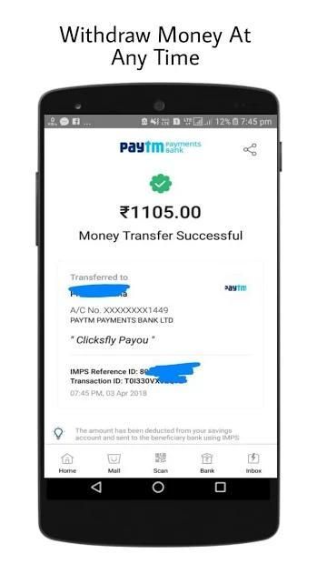 Semua orang ingin mendapatkan paytm dan uang paypal sehingga kami memberi Anda kesempatan untuk mendapatkan uang nyata dengan menyelesaikan beberapa tugas dan menonton video Anda akan mendapatkan semua imbalan atas uang paket Anda. Ketika Anda menyelesaikan tugas maka Anda akan mendapatkan hadiah uang tunai gratis, Anda dapat menarik uang kapan saja ke dompet paytm Anda.