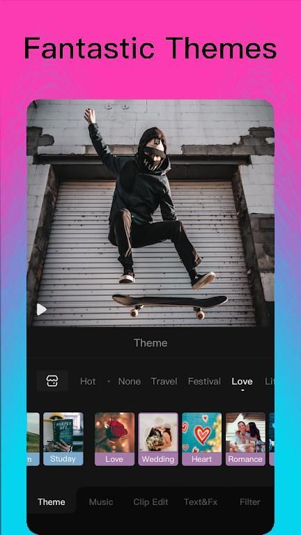 We’ve attentively prepared a variety of themed templates. Each created by professional designers and containing incredible effects. Simply select a template and upload your photos. What templates does splice have? There are 100+ organized by the following categories: