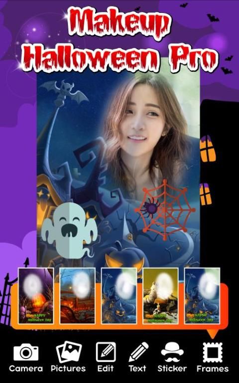 ► Ambil selfie dengan kamera Anda dan menerapkan bingkai foto menakutkan halloween untuk itu!