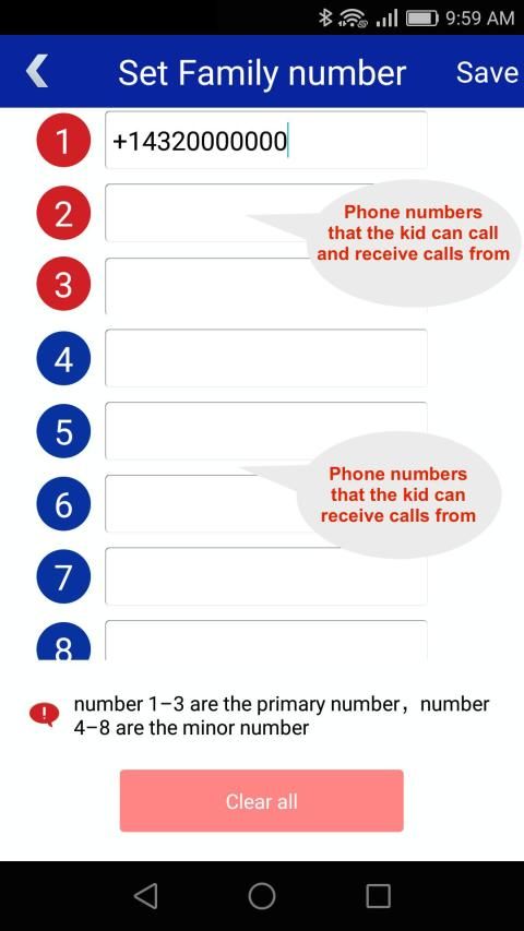 To set the 3 numbers that the kid can call from the watch