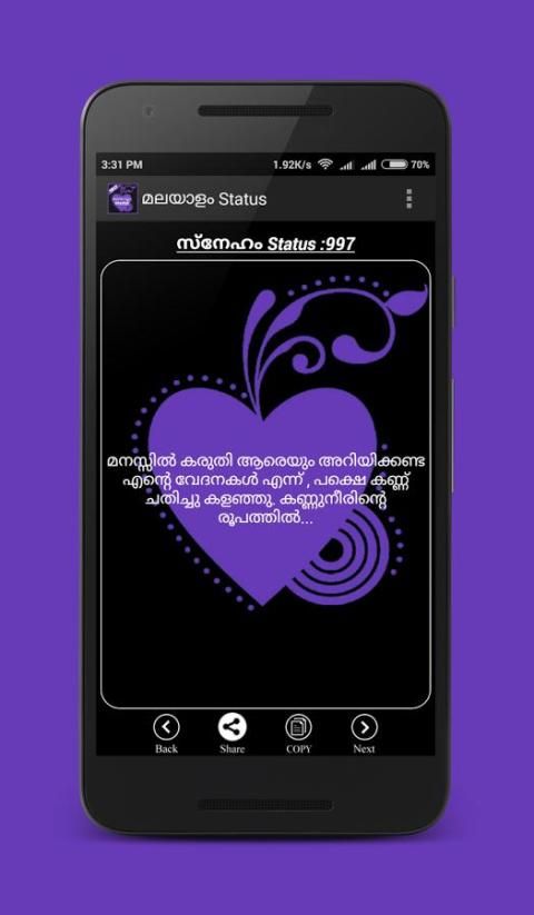 Status Malayalam Aplikasi berisi jenis berikut status terbaru dalam Malayalam Font.