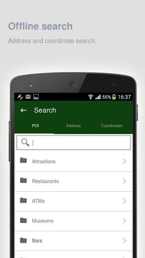 - Offline arah akan membantu Anda mencapai tujuan Anda dengan mobil atau berjalan kaki.