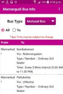 This app provide all information about Mannargudi Mofussil bus and Town bus.
