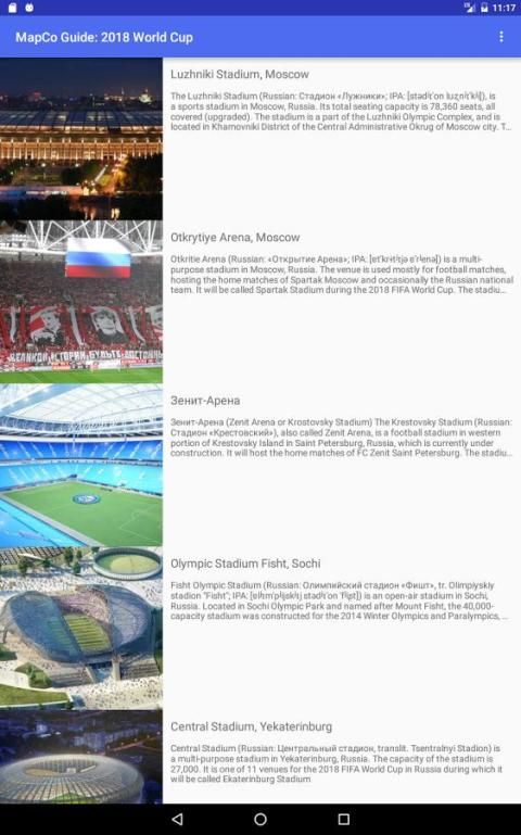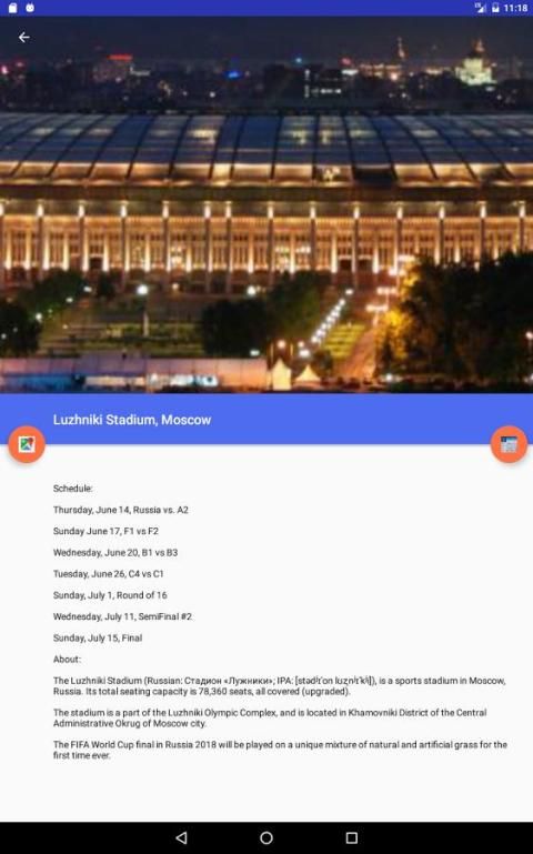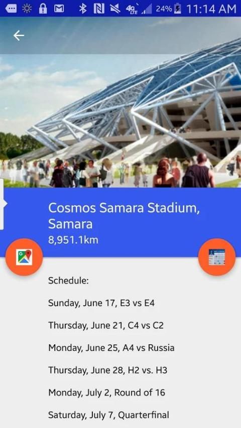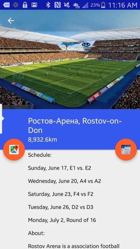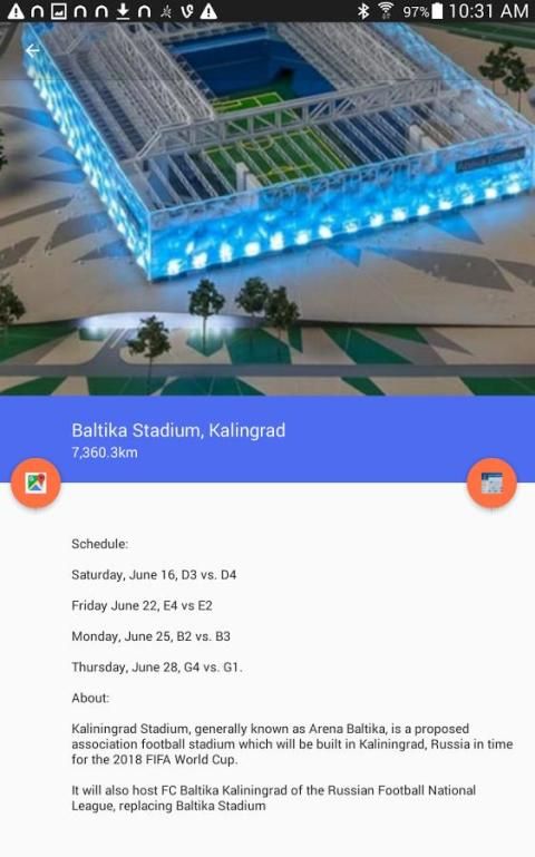 Ini menunjukkan lokasi relatif para pengguna untuk semua game, diurutkan dari yang terdekat dengan terjauh, dan kemudian memberikan informasi rinci tentang semua game berlangsung di stadion tersebut. Stadion di mana game akan dimainkan akan seluruh Rusia (meskipun mereka telah memilih lokasi dekat ke Eropa).