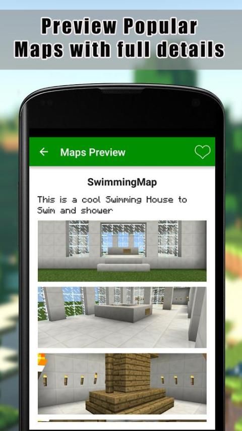 Aplikasi ini memungkinkan Anda memiliki peta basis data terbesar yang pernah tersedia untuk Minecraft Pocket Edition. Aplikasi ini berisi begitu banyak peta mengangkat tangan dengan foto dan deskripsi.