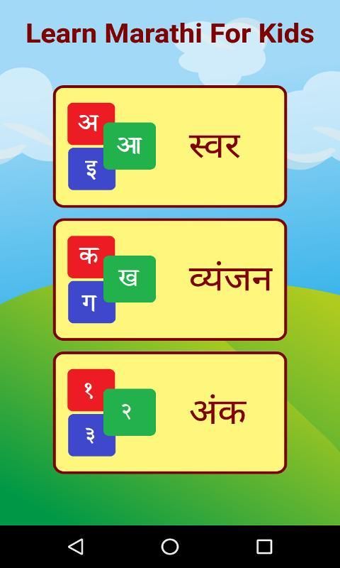 Aplikasi ini memungkinkan anak-anak Anda belajar Swar Marathi dan vyanjan dalam cara yang lebih mudah dengan menghubungkan masing-masing dengan sebuah objek. Gambar / kata-kata memiliki suara tahu bagaimana mengucapkan. Hal ini juga membantu peserta didik untuk berlatih menulis dengan menelusuri huruf.