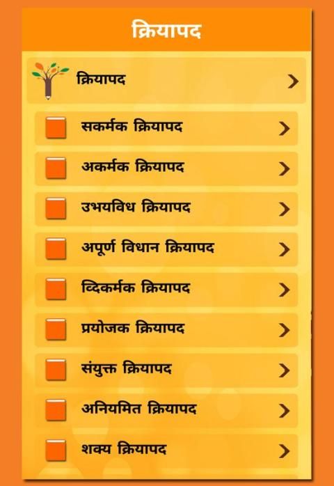 Marathi Vyakaran (Marathi Grammar) aplikasi menggambarkan banyak topik tata bahasa dalam rinci dalam bahasa Marathi.