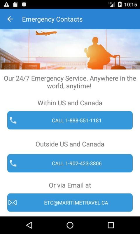 • Emergency Travel Service - all channels of contacting our Emergency Travel Service are available within the app itself, including phone numbers based on location and Email. So when you need to contact someone right away, you have one spot to go to.
