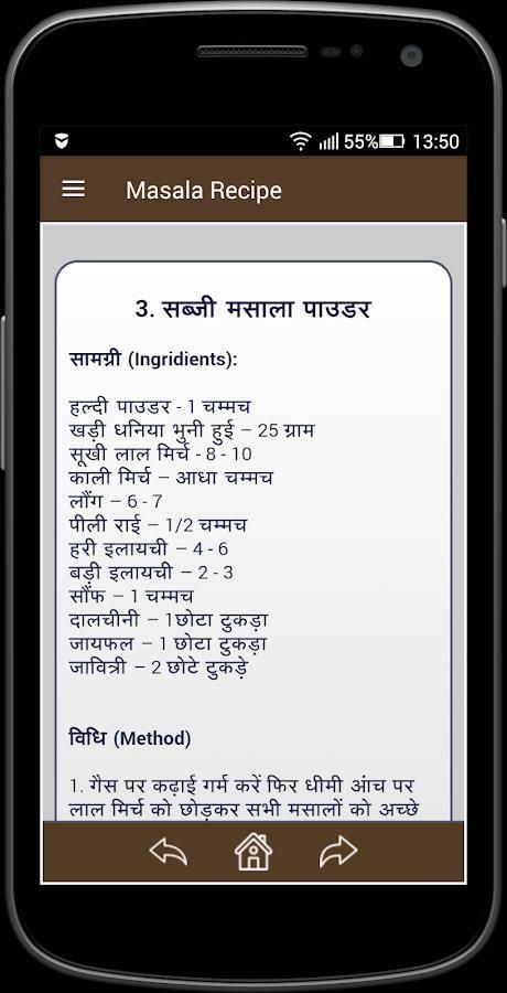 Masala Resep adalah sebuah aplikasi yang memiliki resep lezat dalam bahasa Hindi dari terkenal masala Channel.