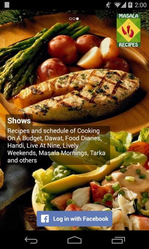 Masala Tv Resep App membawa koleksi besar resep untuk Anda. Resep Asia Terbaik langsung ke ponsel Android Anda. Resep cepat dan mudah yang kini di tangan Anda. Dengan 2500 + indah hidangan mulai dari resep yang tersebar di seluruh kategori makanan pembuka, Desserts, Makanan Cepat Saji, dan menu Main Course. Masala App memberikan resep terbaik, dari koki favorit Anda dan menunjukkan, hak untuk ponsel Android Anda, memungkinkan pengguna untuk resep favorit yang diinginkan untuk digunakan nanti. Anda dapat berbagi resep dan teknik dengan teman-teman Anda melalui Facebook.