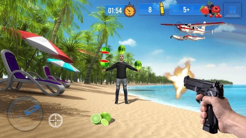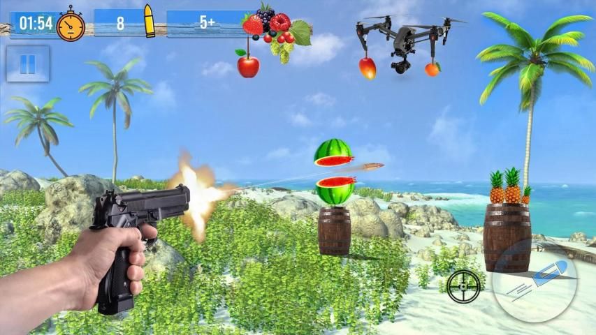 Nikmati mode indah permainan menembak buah untuk meningkatkan keterampilan menembak sniper Anda dengan cara arcade.