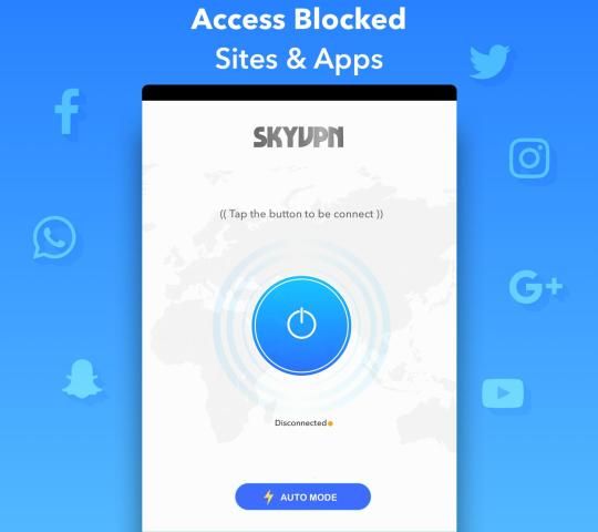 SkyVPN is an Unlimited Traffic & Security VPN proxy,100% FREE VPN ! It helps you access blocked Apps and Sites with Wi-Fi and cellular data networks ,or can’t access private internet ,no need to register, and just One Tap to be connected with the high-speed VPN master proxy server.