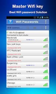 Master Wifi Key app shows only the password of WiFi networks to which you have been connected!