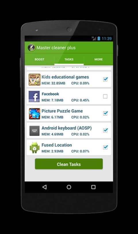 ► Bersihkan memori (RAM) dan mengoptimalkan kecepatan ponsel dengan menghapus tugas latar belakang berlebihan.